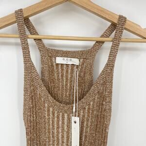 One Grey Day | NWT Dani Tank Dress in Falafel Tan Ribbed Knit Midi XS