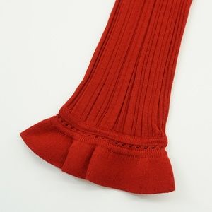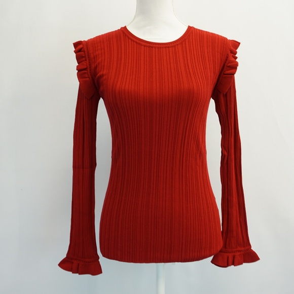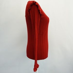 One Grey Day Womens Top Red Ribbed Knit Ruffled Pullover Sweater
