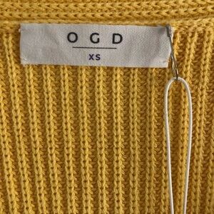 One Grey Day Sweater Rib Knit V-neck Canary Marigold Yellow Size XS