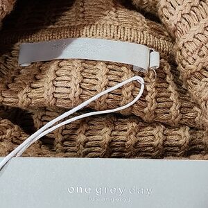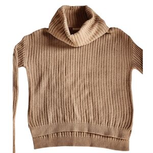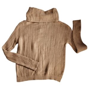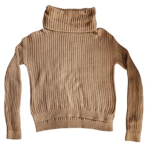 One Grey Day Tan Ribbed Cowl Neck Sweater Cotton Cashmere Blend, Size Large NEW