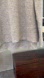 V-Neck Sweater is light gray knit with distressed detail at neckline; sleeves and has a high/low with a slit at the base (see photos). A Sz small with an oversized feel which ads texture and edge to any outfit. No material tag as purchased on sale but is made up of a blend of wool, cashmere, nylon and acrylic this sweater is so soft, durable, and lightweight.