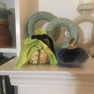 Rustic farmhouse fall Halloween Samhain decor! A cute and whimsical fabric ghost filled with dried sage, rose, and hyssop from my garden, with a touch of star anise and pine and peppermint essential oils! Cute to use as a pumpkin topper, placed on a shelf or side table Halloween display, or hung with a clear wire.