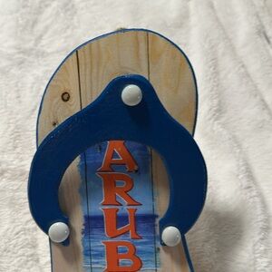 One Happy Island Aruba Flip Flop Sandal wood art work