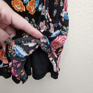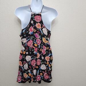 One Heart Clothing Black Multicolor Floral Spaghetti Straps Romper Medium Lined