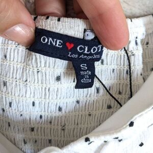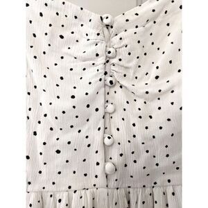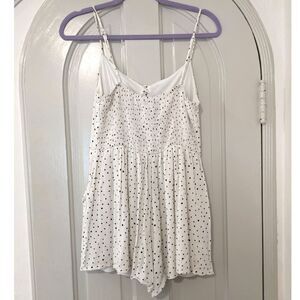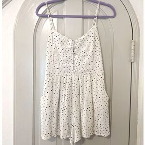 One Heart Clothing Polka Dot Button Front Smocked Back Romper w/Pockets, Sz. S