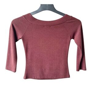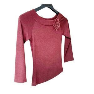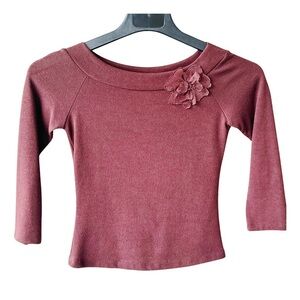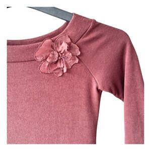 One Heart Wide Crewneck Sweater w/ Flower Embellishment. Brown. Small