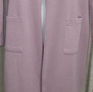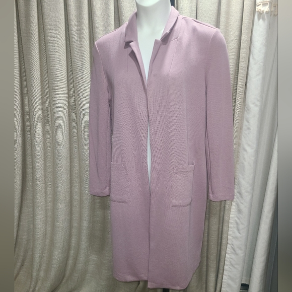 Mave/Purplish color light weight long jacket, 2 front pockets. Fit is more like a large.