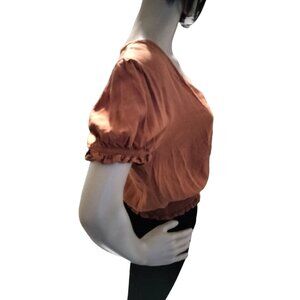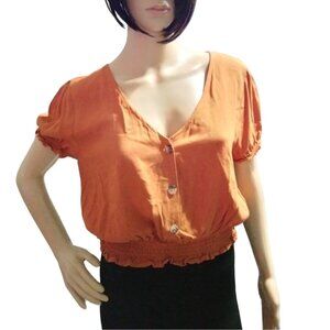 One Love Clothing Womens Orange Smocked Crop Top M Button-Down Short Sleeves