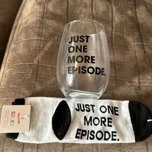 Just One More Episode. Celebrate your favorites and relax in style with this cute and fun stemless wine glass that holds 30 oz. The whole bottle of your favorite beverage.