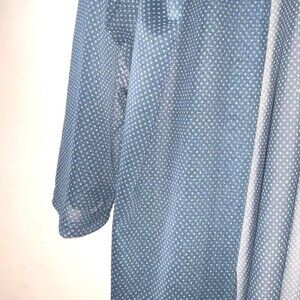 Crafted from a lightweight and breathable fabric blend, this sheer duster cardigan adds a stylish layer to any outfit. The blue hue and polka dot pattern create a modern and versatile look. Ideal for layering, it enhances your attire while offering comfort and elegance.