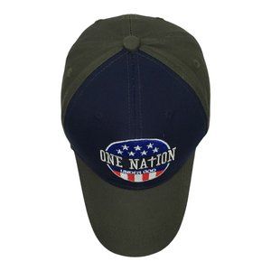 Show your patriotic spirit with the One Nation Under God hat. Featuring a bold navy and olive design, this cap is perfect for any occasion.