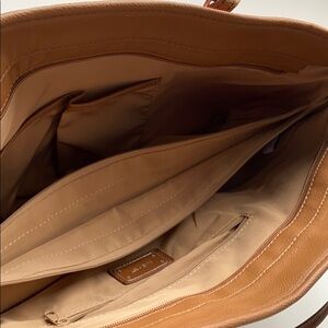 Lined interior features one zippered pocket and two slip/cellphone pockets