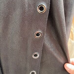 This blazer is in EUC, from the One O One Paris showroom collection. Featuring silver grommets on the lapel, zippered pockets and unfinished sleeve cuffs. Size says 0 but please check out these measurements because it fits me (too well and I am considering keeping it!) and I’m a 10/12. High/low hem. Gorgeous piece!