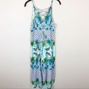 One One Six Palm Printed Jumpsuit Lace Up Medium