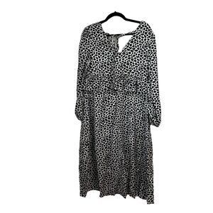 A sultry satin dress in a sassy animal print. V-neck Long puff sleeves Tiered bodice All-over animal print Satin construction 100% polyester Hand wash cold, lay flat to dry