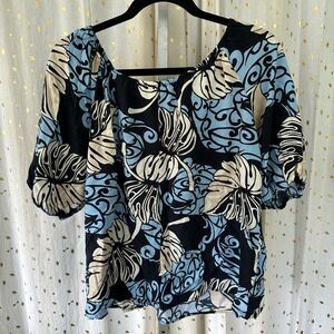 One Papaya Hawaiian Aloha Floral Tropical Leaves On Off Shoulder Peasant Top M