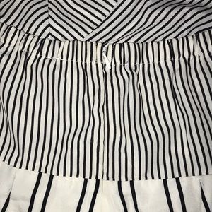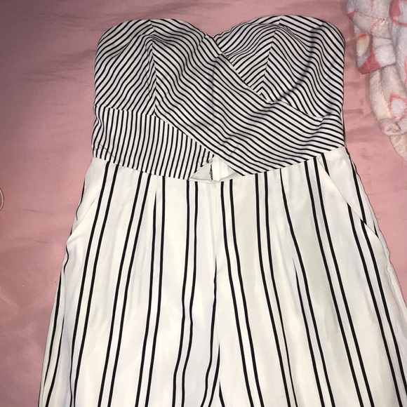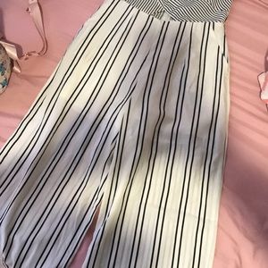 Black & white stripped one piece jumpsuit. Zipper in the back. Also with pockets. No tags but have never worn didn’t fit.
