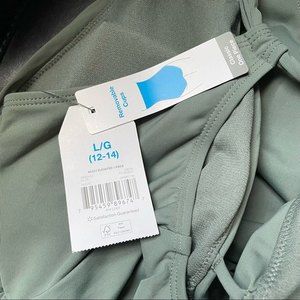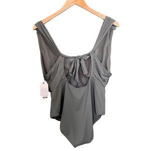One Piece Bathing Suit Sexy Plunging Neck Tie-Back Swimsuit Olive Green Large