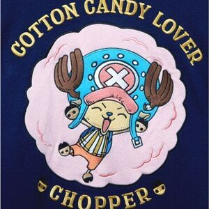 Featuring an embroidered design of Chopper's hat on the front, the back of the sweater includes a full portrait of the reindeer between "Cotton Candy Lover Chopper" lettering. With a button front, pockets, and checkered sleeves, this cardigan is perfect for fans of the anime. Don't miss the woven label on the hem!