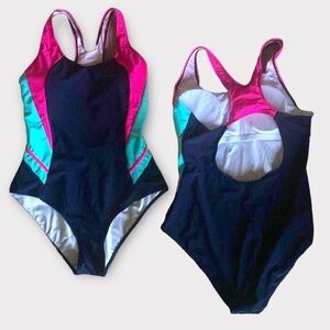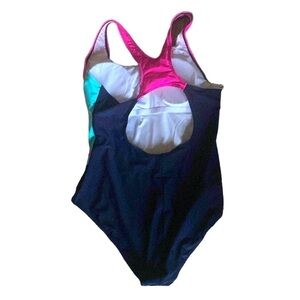 One Piece Color Block Swimsuit Back Cut Out Padded Bra Blue Pink Size 4X…