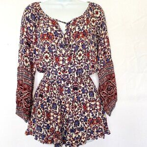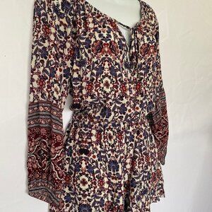 One Piece Floral Jumpsuit/Romper..Boho style....long sleeves...pocket on both sides...elastic waist band...v neck with spaghetti tie...see photos for details...012822