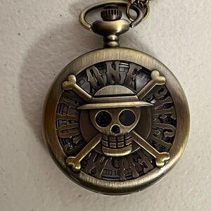 One Piece Logo Pocket Watch Brown Tan White Watches Time Pocketwatch