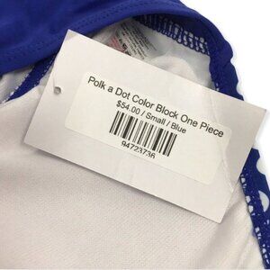One Piece POLKA DOT Swimsuit Blue White Women Size Small Color Block New