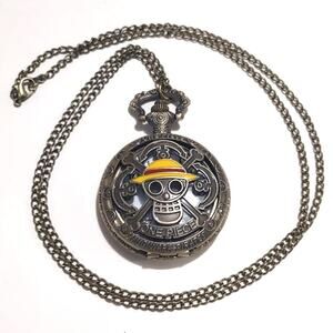 Solid Bronze Fully Functional One Piece Pocket Watch Pirate Anime Necklace Clock Christmas Gift