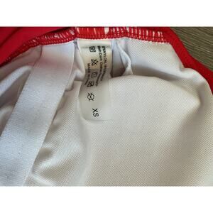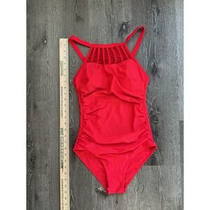 One Piece Ruched Side Halter Neck Mesh Detail Red Bathing Swim Suit Womens XS