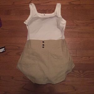 Very cute one piece! Bottom is a skirt - top is sewn into bottom to appear flush, like a perfect fit outfit! Zip closure on side.