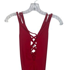 One Piece Swimsuit Crisscross Straps Open Back Red Size Medium
