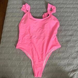 One piece suit hot pink ruffle straps. Size large never worn