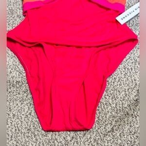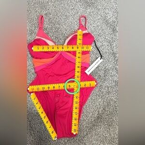 One Piece Swimsuit Pink and Orange Robin Piccone Hi Cut Cheeky Plunge 3425 Tags