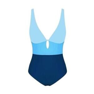 One Piece Swimsuit Women’s Small Blue Colorblock Scoop Neck Tummy Control