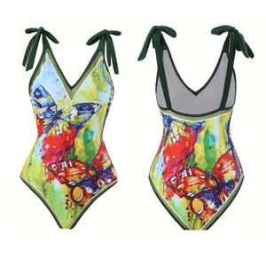 Stunning One Piece Butterfly Patterned Swimsuit with a gorgeous Wrap Sarong Coverup - NWT