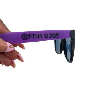 Show your school spirit with these sleek One Proviso PTHS D209 sunglasses! Featuring a black frame with purple arms, these rubberized sunglasses are lightweight, durable, and perfect for everyday wear.