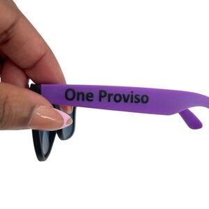One Proviso sunglasses, PTHS D209 school spirit gear, black purple sunglasses, Proviso Math and Science Academy accessories, district 209 fan gear, rubberized school sunglasses, Illinois high school merchandise, forest park IL, hillside IL, Maywood IL, proviso west high school, proviso east high school, UV400 protection sunglasses, unisex sunglasses