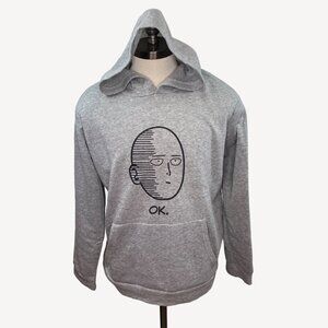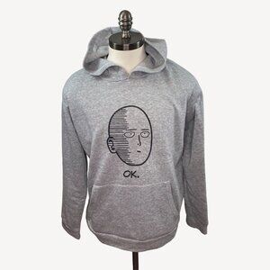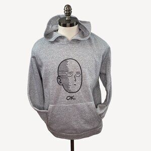 One Punch Man Anime Unisex Gray Hooded Sweatshirt "OK." Face Print