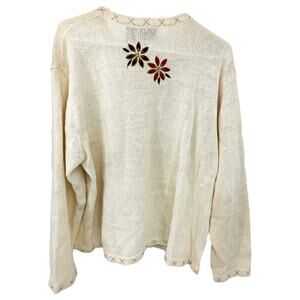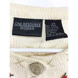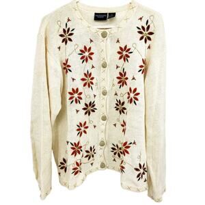 One Resource Floral Cardigan Sweater Cream Button Up Embroidered 2X