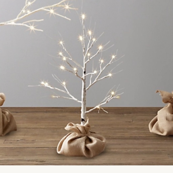 This Restoration Hardware Winter Wonderland birch tree adds a magical glow to any indoor holiday decor. The branches are sturdy enough to hold garland or ornaments but the lights look elegant all on their own. Operates on 3AA batteries (another included). The on/off switch has a timer option (6H on/18H off). Please see the photos for more details on the timer. Bulbs are non-replaceable.