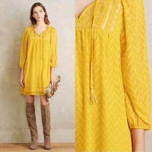 One September Anthropologie Anwen Peasant Dress mini Maize gold yellow