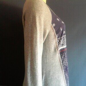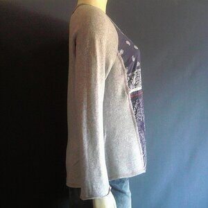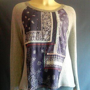 One September Anthropologie Bandana Patchwork Grey Knit Top Sm