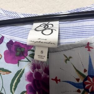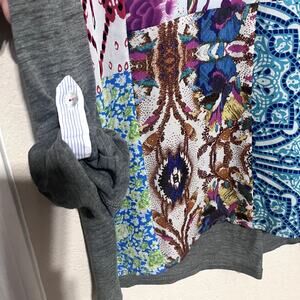 One September Anthropologie Milieu Top patchwork shirt sz S knit mixed media