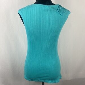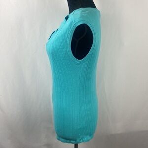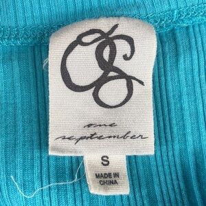 One September Turquoise Ribbed Asymmetrical Tank Top with Ruffle Accent