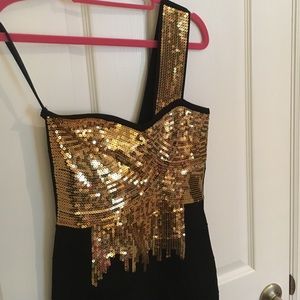 One shoulder dress is extravagantly decorated on the shoulder and drips down the front. Stretchy and comfortable! Worn once for a sweet sixteen. No damage or flaws. Cheaper on Ⓜ️erc@ri