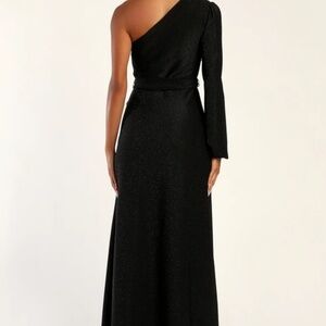 Sparkling Romance Shiny Black One-Shoulder Maxi Dress Worn once for a wedding .. great for black tie functions!
