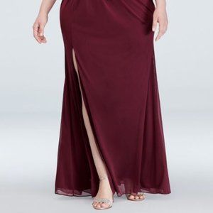 One Shoulder Bridesmaids Dress with Slit David's Bridal Wine Burgundy Lace Side
