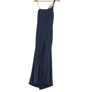 Make a statement at your next event with this stunning one-shoulder glitter gown. The elegant side slit adds a touch of sophistication and allure, while the midnight blue hue ensures you stand out in style. Ideal for evening occasions where you wish to leave a lasting impression.