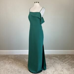 One Shoulder Evening Gown Green Size 14 Sleeveless Side Slit by Laundry