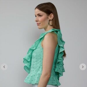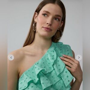 One Shoulder Eyelet Ruffle Tank Top